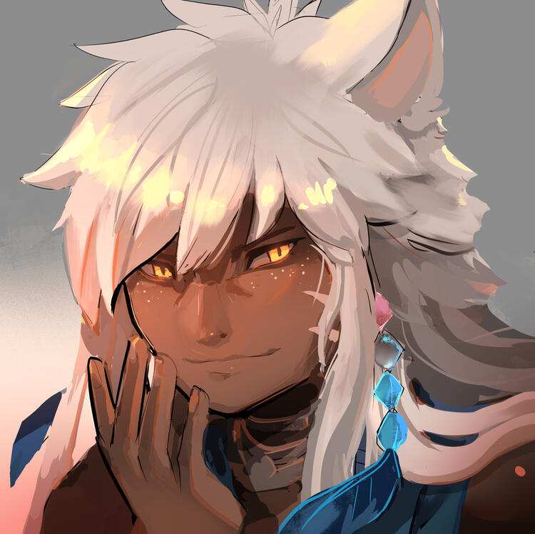 BackstoryI'zhet Tia was born to the sunseeker I tribe residing in southern thanalan. I'zhet became infamous from a young age for creating trouble for everyone and everything near him. Negligent parents didn't make the situation better so I'zhet turned to his own curiosity and love for tinkering to keep himself entertained. Of course this led to an incident involving explosives resulting in 11 year old I'zhet getting banished from his tribe and forced to fend for himself out in the wild.On the brink of starvation and fatigue he passed out in the desert thinking this was the end of his short and pathetic life. Fortunately a local tribe of Amalj'aa had been keeping an eye on the strange miqo'te that had been wandering close to their hunting grounds, staying alert since they had a tendency of being attacked because they were so called "beastmen". Truth was that they'd split off from their original tribe to live a more peaceful life. Eventually they decided to approach the miqo'te after noticing that he'd stopped moving for several minutes. Discussing amongst themselves they decided to carry the passed out sun seeker home and nurture him back to health, he was rather young and no one seemed to have come to collect him so he'd be no threat to the tribe either.I'zhet recovered fast after that and was accepted into the tribe and was treated as if he was an Amalj'aa himself. The tribe taught him everything from hunting, cooking and survival. Eventually he also learned the art of thaumaturgy. I'zhet was a natural and a fast learner and mastered spells with ease which left his Amalj'aa teachers speechless. Apart from his skills in spellcasting he also continued his hobby of tinkering. More specifically he experimented a lot with explosives in case of emergencies if the tribe ever came under attack or if outsiders were trespassing in their territory.During one of his many experiments he accidentally misplaced one of his latest prototypes. That one mistake cost him his tail, getting several severe burns and scarring. Eventually when it did heal and furr started growing back it remained poofy and dry causing him to neglect it which didn't help the already sorry state of his tail.Eventually the Amalj'aa decided it was time for I'zhet to leave the nest and continue to hone his skills to become a full fledged black mage. His arrival at Ul'dah marked the start of his journey to becoming the warrior of light.